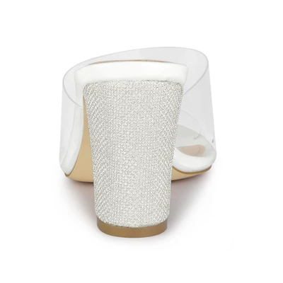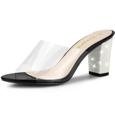 - Clear Slide Heel Sandals,Block Heels, Glitter Heel Decor