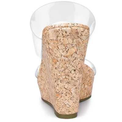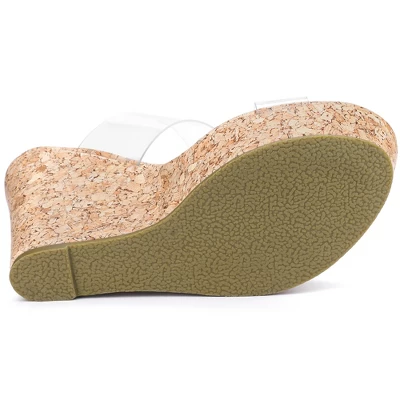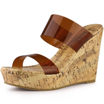 - Wedges Heels; Two Transparent Bands; Open Toe; Platform Slide Mule Heel Sandals