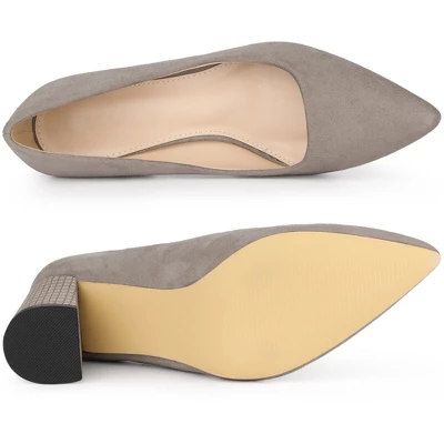 - Chunky Heel Pumps for Women; Slip-on Closure; Block Heels; Close Toe; Low Heel; Printed Heel; Pointy Toe