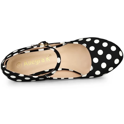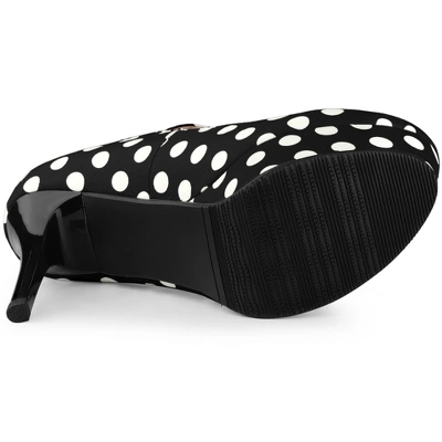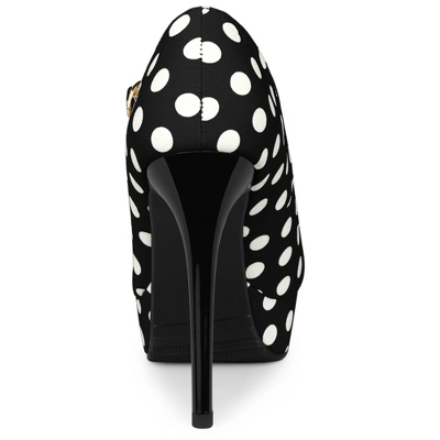 - Polka Dots Stiletto Heel Pumps; Platform; Ankle Strap; Round Toe; Sky-High Heel