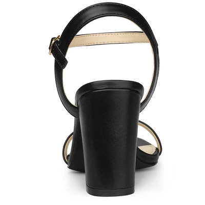 In a classic colorway, it is understated and easy to style. The elegant 8.5 cm block heels exude a modern charm while offering ample height. Occasion: Office, Interview, Party, Halloween days, Christmas Days, Dating, Evening. Chunky Heel Sandals; Buckle Closure; Open Toe; Slingback; Vamp: Faux Leather; Outsole: Rubber; Heel: ABS; Heel Height: 3 1/3 inches.