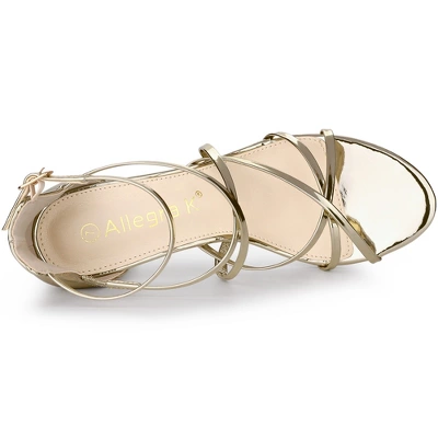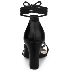 - Strappy Heels, Chunky, Glossy Covered, Crisscross Strap