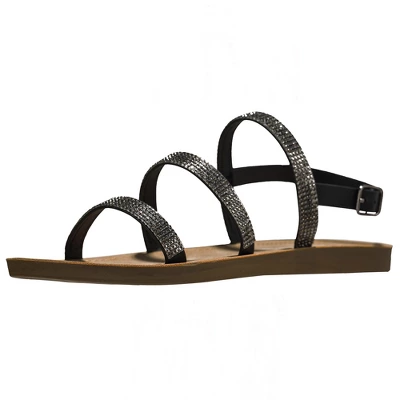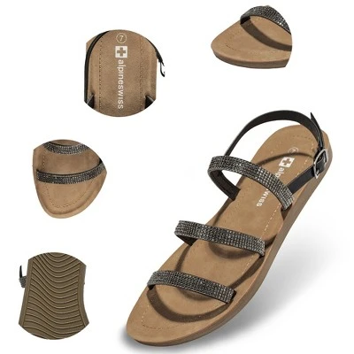 Alpine Swiss Womens Flat Strappy Rhinestone Sandals Gladiator Shoes