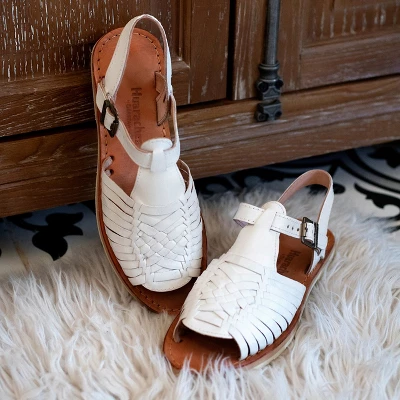 A must-have sandal that will see you through the summer. Whether paired with shorts, a skirt or dress, this well made premium leather sandal can be dressed up or down for many occasions. These open toe flats fashioned with weave detailing have an adjustable buckle ankle strap for a secure fit, cushioned leather footbed topcover for comfort and rubber outsole.