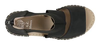 Complete your warm weather ensembles with the Tia Wedge Sandal by GC Shoes. This stylish espadrille features textured elastic straps that provide a comfortable and secure fit. The espadrille wedge adds a touch of summer flair, while the back zip closure allows for easy on and off. Whether you’re strolling on the beach or enjoying a sunny day out, the Tia Wedge Sandal is the perfect companion for effortless style and convenience. Step into the Tia Wedge Sandal and step up your warm weather fashion game.