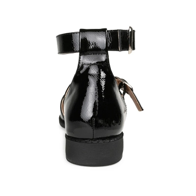 Introducing the freshest take on the classic Mary Jane flat, the Constance by Journee Collection. This round-toe flat showcases glossy vegan leather adorned with buckled straps on the vamp and ankle for a modern look. The low block heel, wide-width footbed, and padded insole provide a subtle lift and comfortable fit to complete the style.