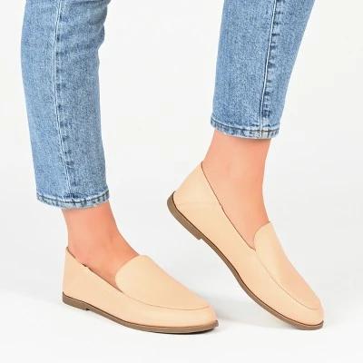 Elevate your shoe collection with the Corinne loafers by Journee Collection. These classics are designed with twin notches and an almond-shaped toe, adding an element of sophistication to your style. The soft vegan leather material, crash back, wide-width footbed, and 4 mm Tru Comfort Foam™ insole complete the look and promise exceptional comfort.
