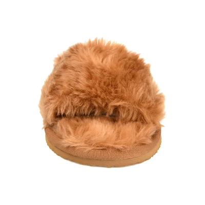 Lounge in absolute comfort. The Dawn by Journee Collection is a plush slide-on slipper featuring an open toe and all-over faux-fur. A sturdy bottom outsole and a dreamy cushioned footbed finish this relaxed look. At Journee Collection, our slipper styles will have your feet feeling like they’re on cloud 9. Perfect for when you want to wear shoes in the house but don’t want the problem of having to untie them.
