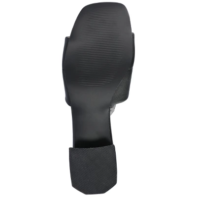 Our Elidia block heel sandals from Journee Collection will be one of the most comfortable pairs of sandals that you will own, with their padded insole. Their luxe vegan leather, single band design, quilted detail, and open square toe will be a guarantee to leave your feet feeling more stylish than ever. As a bonus, their slip-on closure makes them perfect for when you need a nice shoe to slip on, complimenting your feet.