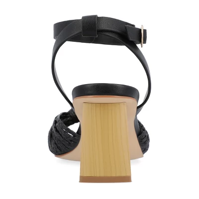 Our Galinda sandals from Journee Collection have a 4 mm Tru Comfort Foam™ insole that will leave your feet feeling more comfortable than ever before. Their soft tonal raffia material, a knot detail, inset block heel, ankle strap, and round buckle will make you walk in style. Their open square toe will also add a lovely finishing touch to keep your outfit snatched.