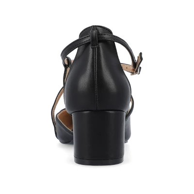 Our Galvinn heels from Journee Collection will have your outfit looking better than ever. With their luxe vegan leather, multi-strap, and buckle, as well as their crisscross straps, this style is to attract your compliments. As a bonus, their pointed-toe shape and padded insole will take you from event to event in comfort and style.