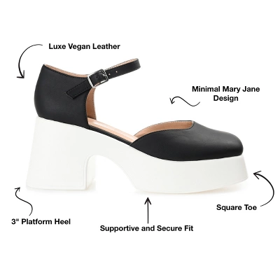 Made to pair with your favorite thrift store finds, the Lizaa heels by Journee Collection are a true throwback. This 90s-inspired platform d’Orsay is detailed with soft vegan leather and a square-toe for an authentic look. The padded footbed and buckled strap will keep you on your feet with ease as you jam out to all your favorite boy bands. At Journee Collection, our pump styles will let you go from a fun night out with the girls to kicking back and relaxing at the end of the night without any trouble.