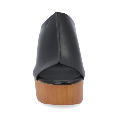 The Lorenza faux wood platform sandals from Journee Collection are the perfect shoe to take you from work to a nice evening out to dinner with their open round toe. Having been made from luxe vegan leather and center seam detail, it will make them a simple yet classy sandal, giving you the perfect combination of not overdressed but not underdressed. As a bonus, their 4 mm Tru Comfort Foam™ insole, slip-on closure, and clog design will make them one of the most comfortable pairs of shoes that you will ever wear.