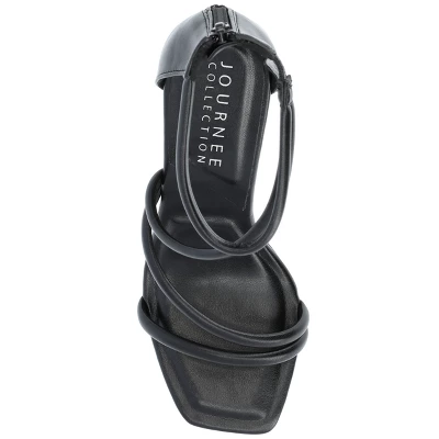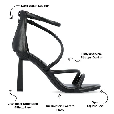 Our Marza stiletto heels from Journee Collection will have you walking around getting compliments everywhere you go. This look might become your new favorite with their luxe vegan leather, light puff straps, and back zip entry. As a bonus, their 5 mm Tru Comfort Foam™ insole and open square toe will leave your feet doing the happy dance for how comfortable they will feel.