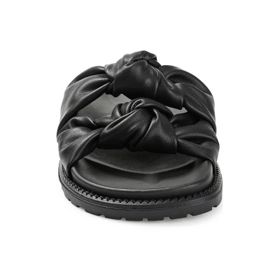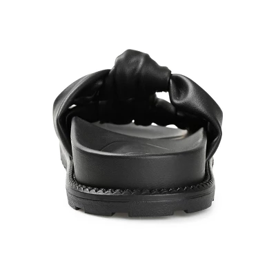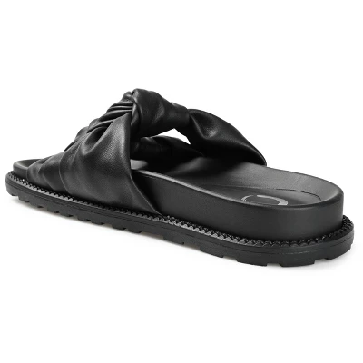 You’ll look oh-so-cool at the pool or beach Melanie by Journee Collection. With a comfy padded footbed and soft vegan leather, this sporty slide fits like a dream. Puffed straps with knot details top the look. At Journee Collection, our sandal styles are going to be perfect for any occasion. Whether that be a formal, business, or casual dress, these sandals will be a perfect match.