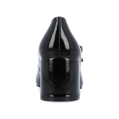 Introducing the Okenna Mary Jane heel from Journee Collection. This retro-inspired heel takes you back to the 90s with its patent vegan leather and buckled strap. The covered block heel and soft square-toe make the Okenna a comfortable choice, while the 4 mm Tru Comfort Foam™ insole and wide-width footbed ensure the perfect fit.