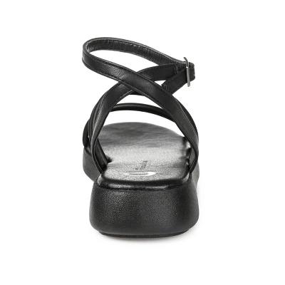 Perfect for those fun days in the sun, the Palomma sandal by Journee Collection. This modern style features a wraparound buckle strap and puffed vegan leather straps at the toe. A 4 mm Tru Comfort Foam™ lines the insole for extra comfort, and a thick white sole adds retro charm to the design. At Journee Collection, our sandal styles are going to be perfect for any occasion. Whether that be a formal, business, or casual dress, these sandals will be a perfect match.