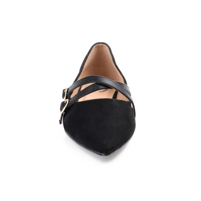 You won’t believe how comfy and cute the Patricia flats by Journee Collection are. The padded insole, wide-width footbed, and soft vegan leather make them the perfect choice for a long day out. The crisscrossed buckled straps add some edginess, while the pointed-toe brings a classic touch to your outfit. Choose from classic pinks and bold animal prints.