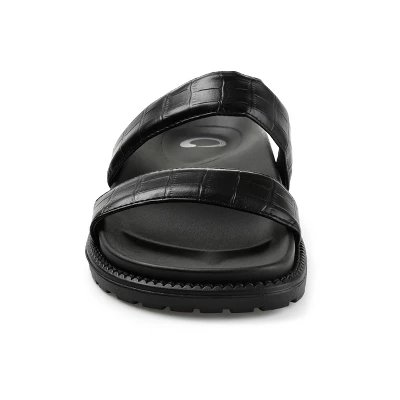 Show off your pedi in the Stellina sandal by Journee Collection. This effortlessly cool slide features a padded insole and supple vegan leather for all-day comfort and support. Double straps with croc-inspired details add a bold touch. At Journee Collection, our sandal styles are going to be perfect for any occasion. Whether that be a formal, business, or casual dress, these sandals will be a perfect match.