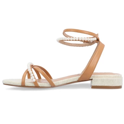 Journee Collection Womens Tulsi Faux Pearl Ankle Strap Covered Block Heel Sandals
