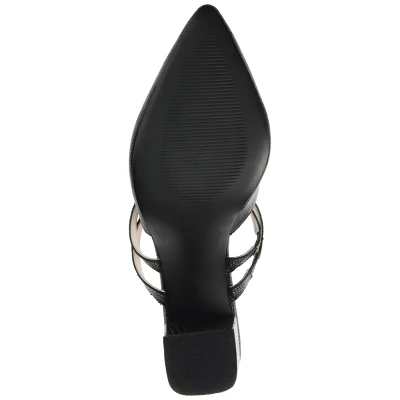Twin straps rest atop this slip-on heel for a clever twist. The Kaitlynn by Journee Signature is an almond-toe silhouette detailed with a boxed-shaped top line and stout block heel. Genuine leather uppers shape the design, and a 4 mm Tru Comfort Foam™ footbed allows you to walk with ease.