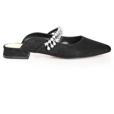 Introducing our Strappy Point Mule – the perfect choice for when you want a chic and polished look. These mules are made with a faux suede fabrication and feature a pointed toe and wide width fit. They’re also adorned with a beautiful jeweled strapCasual and effortless, Evans makes everyday style oh-so-easy. This beloved English brand offers quality, curve-loving pieces for any occasion that will make you look and feel your best. From easy-going dresses to statement essentials, Evans is comfortable, tasteful and perfect for your everyday wardrobe. Available in sizes 14 – 32.
